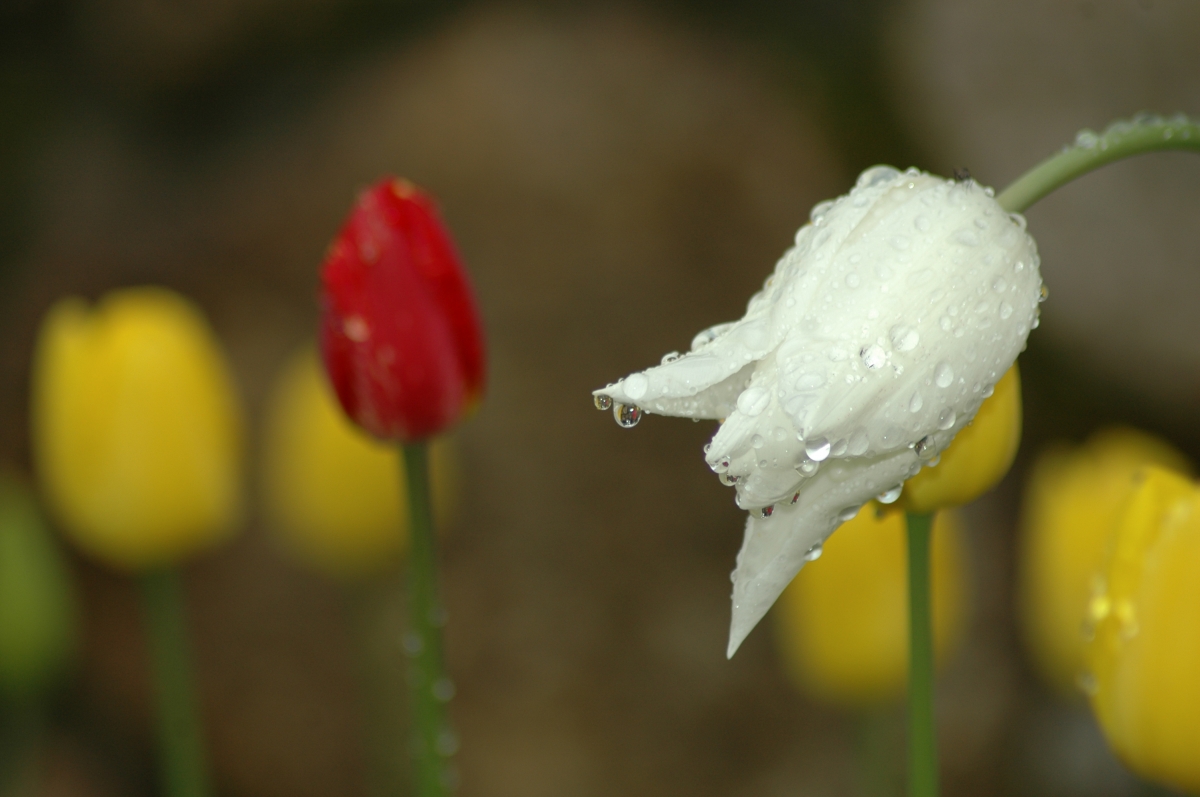 Fotka tulipany po deszczu z albumu : Ogród Arkadii wiosną