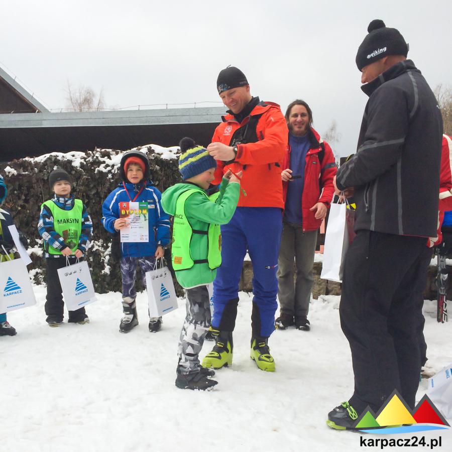 Fotka Nagrody wręczają: burmistrz Karpacza - Radosław Jęcek i trener KS Śnieżka - Waldek Cich z albumu : Zawody narciarskie LAUR ŚNIEŻKI 2015