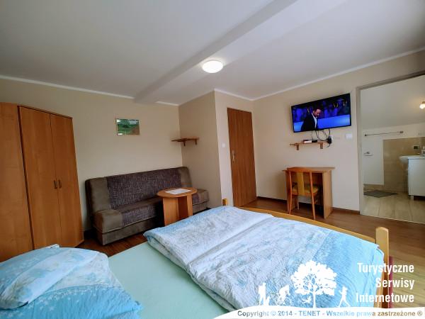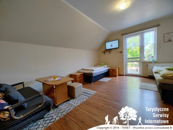 Osobne wejście dla gości, przestrzenny, ładny pokój z dużą łazienką w pokoju. W pokoju jest fotel rozkładany traktowany jako dostawka. Poprzez okno dachowe nad łóżkiem małżeńskim można podziwiać piękno gwieździstych nocy.